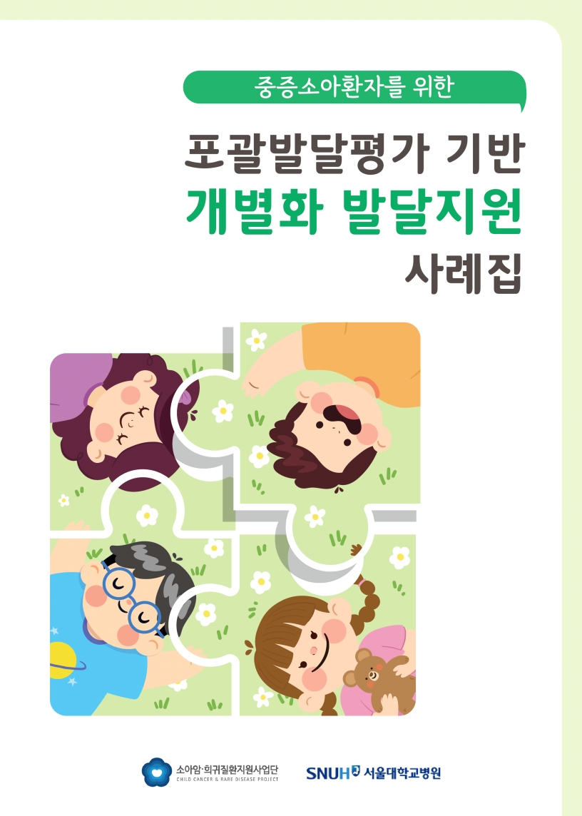 중증소아환자를 위한 포괄발달평가 기반 개별화 발달지원 사례집 꿈틀꽃씨 발간자료 0 13 03.30 13:01 2026.03.30 13:01 ★중증소아환자를 위한 포괄발달평가 기반 개별화 발달지원 사례집최종.pdf (8.6M) + 3 중증소아환자를 위한 포괄발달평가 기반 개별화 발달지원 사례집2025.12. 발간본 사례집은 중증소아환자의 발달 요구를 생애주기(걸음마기·유아기·학령기) 관점에서 제시하고, 포괄발달평가 결과를 기반으로 한 개별화 발달지원 과정과 실제 적용 가능한 지원 방법을 정리하였습니다.위 첨부파일을 클릭하시면 다운로드 가능합니다.(어플은 파일 다운로드가 불가하오니, 홈페이지 접속 후 다운로드를 부탁드립니다^^)